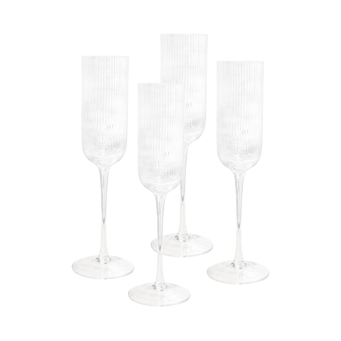 Description: Lend an air of vintage sophistication to your next champagne toast with the Atticus Ribbed Champagne Glasses. Made from fluted glass, these highball glasses are sure to elevate your table and be the envy of all your dinner guests. As these glasses are hand blown, please allow for minor imperfections and differences between glasses. The Atticus Ribbed Champagne Glasses come in a set of 4 and are a perfect option for corporate gifting and hampers. Keywords: Glass, cocktail, alcohol, wine, champagne, beer