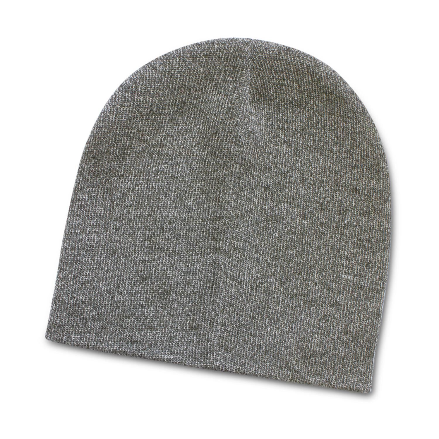 Description: Warm close-fitting beanie which is knitted with heather-style acrylic yarns to give a two-tone finish. It is available in one size which will fit most people.