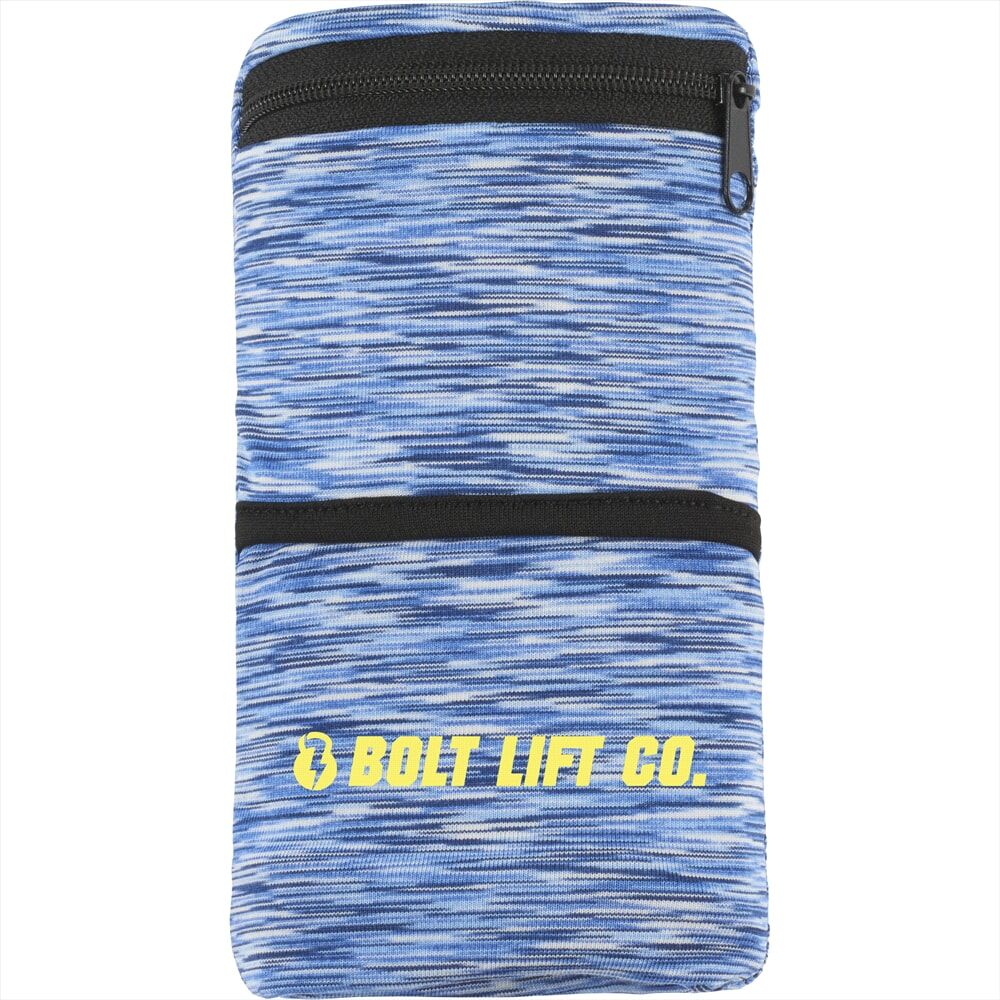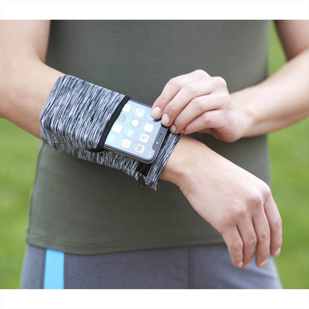 Description: The cool breathable material dual storage areas and trendy heathered pattern makes this band perfect for any activity and event.