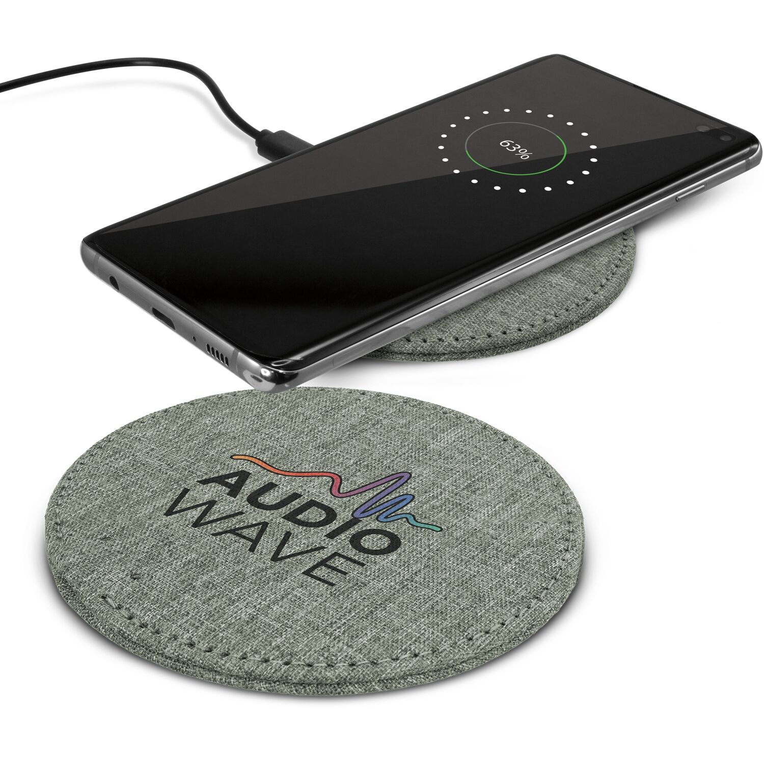 Description: Wireless 5W phone charger which is finished with trendy poly-canvas fabric. It will charge devices that are enabled for wireless charging and will work with most modern phones. Simply plug it into any USB port or a mains adapter and place a compatible device on it for convenient wireless charging. Hadron is presented in a black box with an 80cm Micro-B USB cable and an instruction leaflet. Please note that some phone cases may affect the wireless charging connection. The wireless charger will work at the optimum power level when used with a 5V/2.4A mains adaptor. Using a PC/laptop USB output to power the wireless charger may lead to slow charging, or not charging at all. Other factors like, positioning on the charging surface and the type of case used may also impact wireless charging.