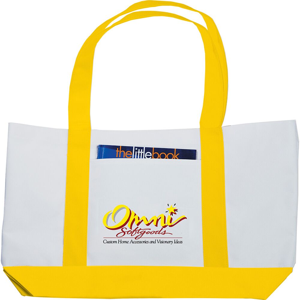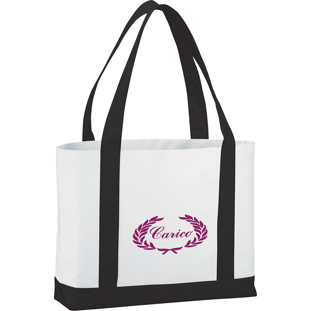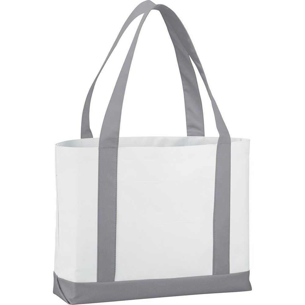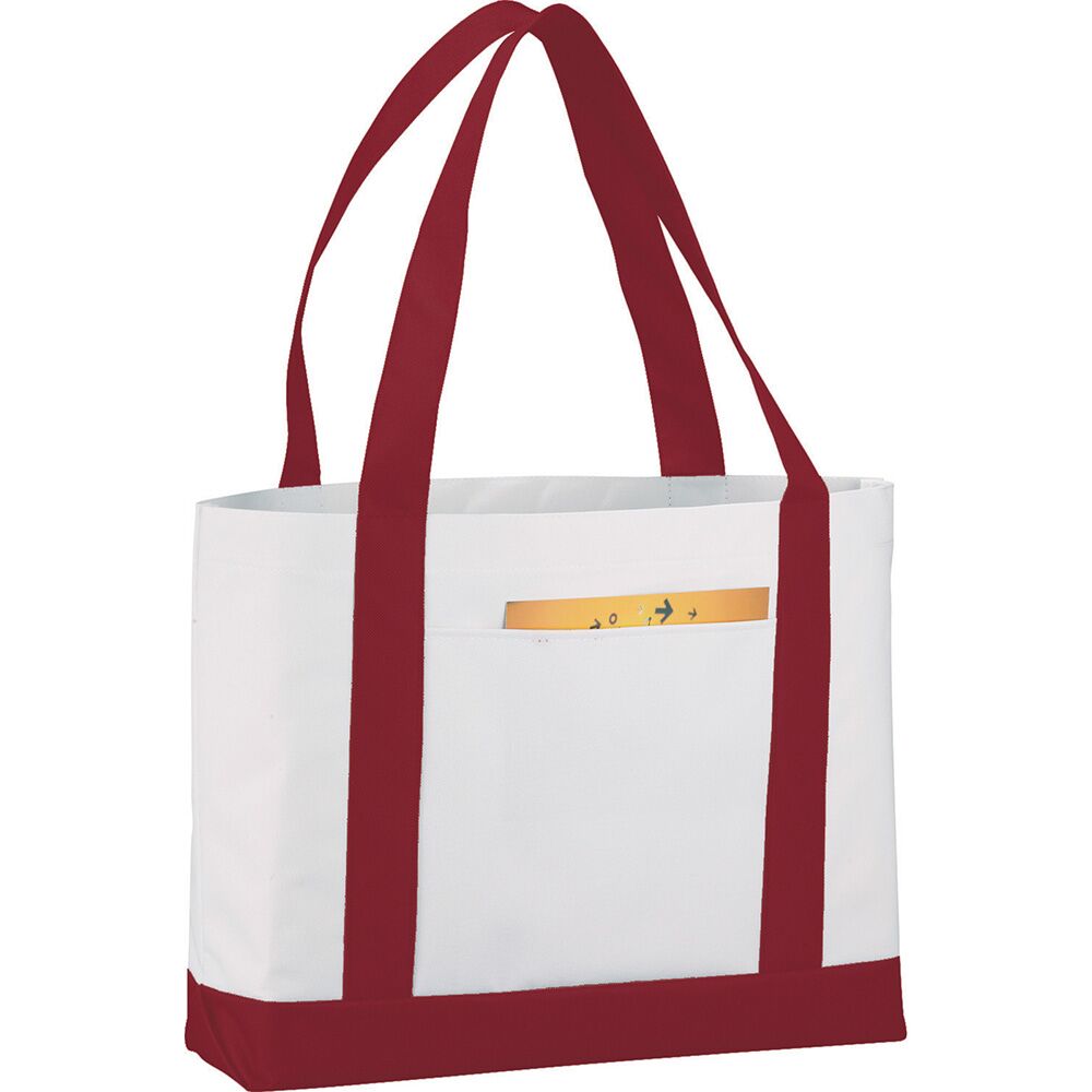 Description: Large open main compartment with double 23-inch handles. Front open pocket. Notebook not included. Disclaimer: Gusset & Handle Decorating is Transfer Only