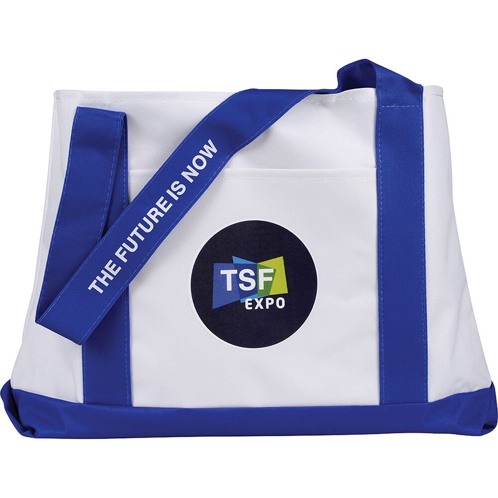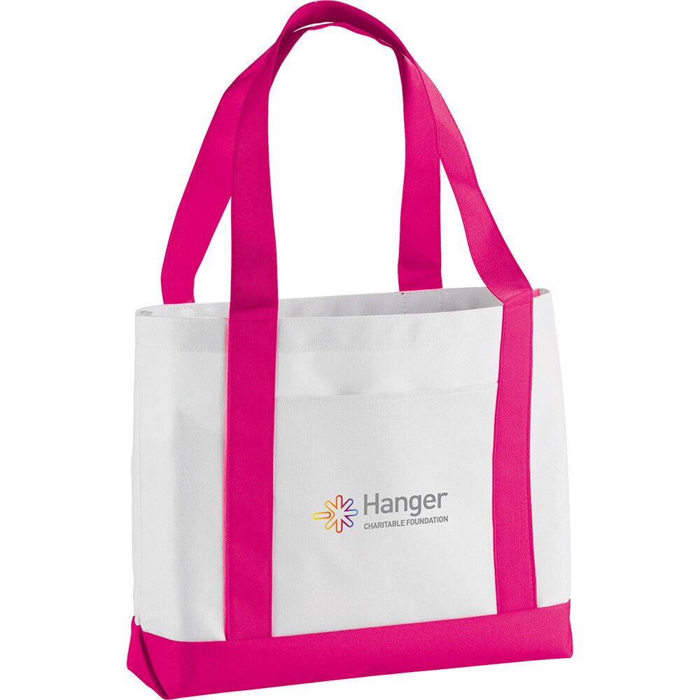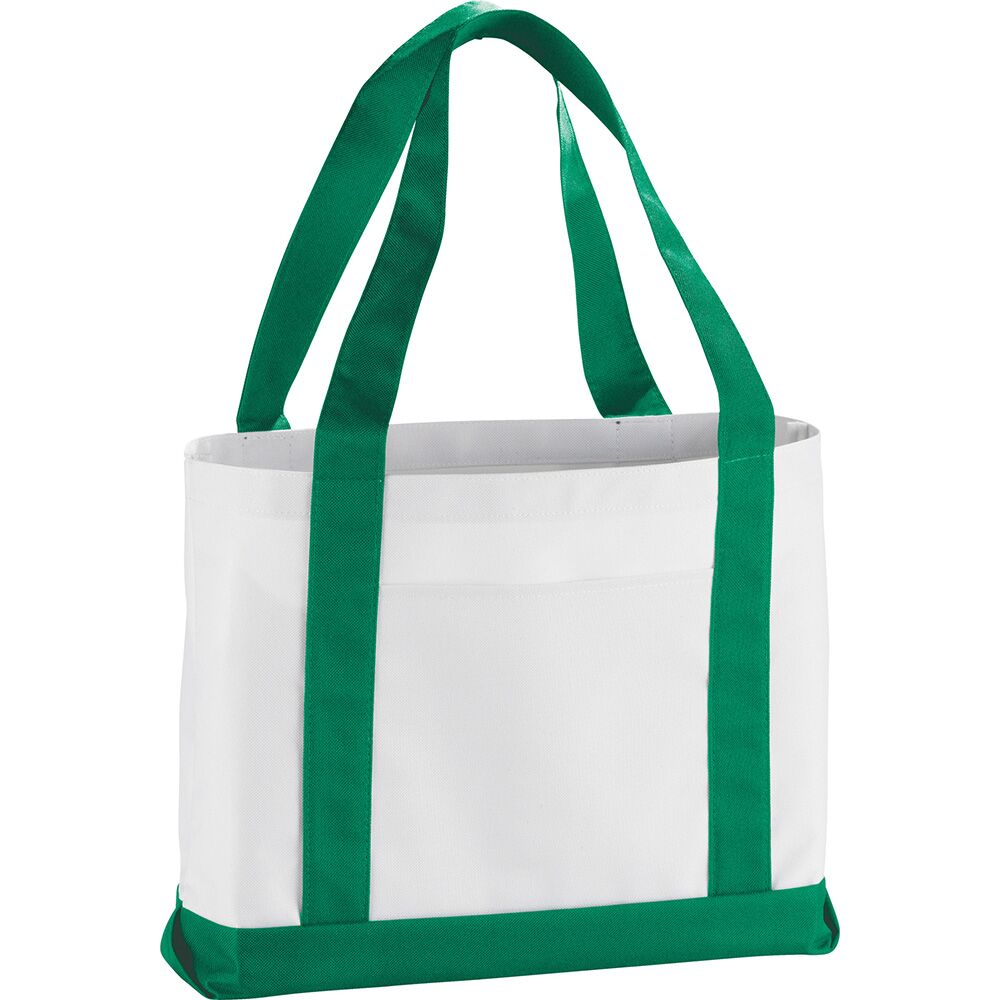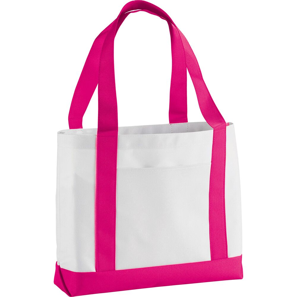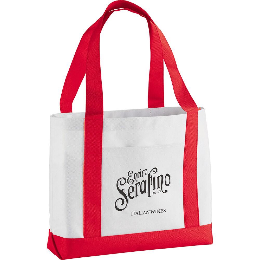 Description: Large open main compartment with double 23-inch handles. Front open pocket. Notebook not included. Disclaimer: Gusset & Handle Decorating is Transfer Only