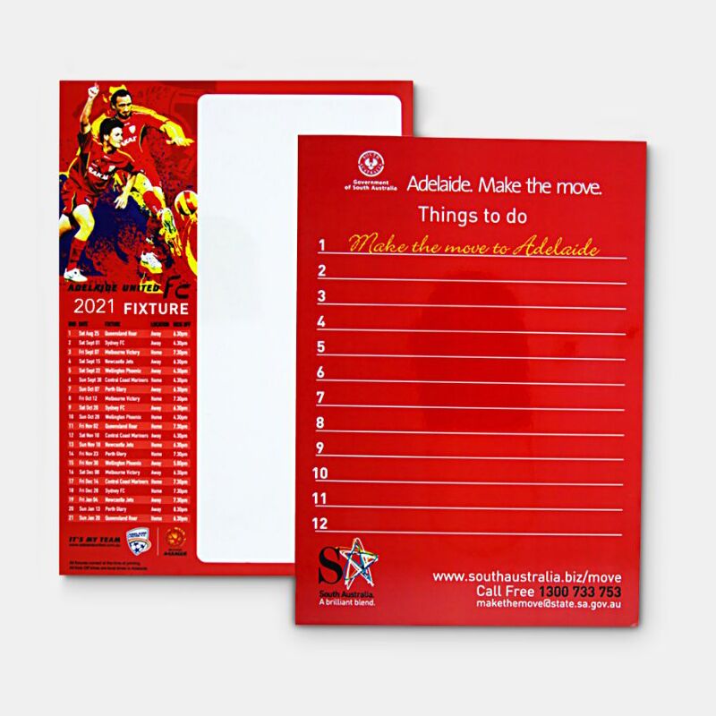Description: What a great way to leave messages in the home or office. Combine this with a magnetic whiteboard marker/poly bagged to complete this great product. Please note you cannot print on the back. The imagery is to show two options of print on the front of the whiteboard. Poly bagging add $0.25(G) per unit. Add a marker and clip to complete this great product for $0.45(G). Variable-data printing (VDP) (Also known as variable-information printing (VIP) or VI) is a form of digital printing, including on-demand printing, in which elements such as text, graphics and images may be changed from one printed piece to the next, without stopping or slowing down the printing process and using information from a database or external file. For example, a set of labels, each with the same basic layout, can be printed with a different name on each label. Variable data printing is mainly used for direct marketing, customer relationship management, advertising, invoicing and applying addressing on selfmailers, brochures or postcard campaigns.