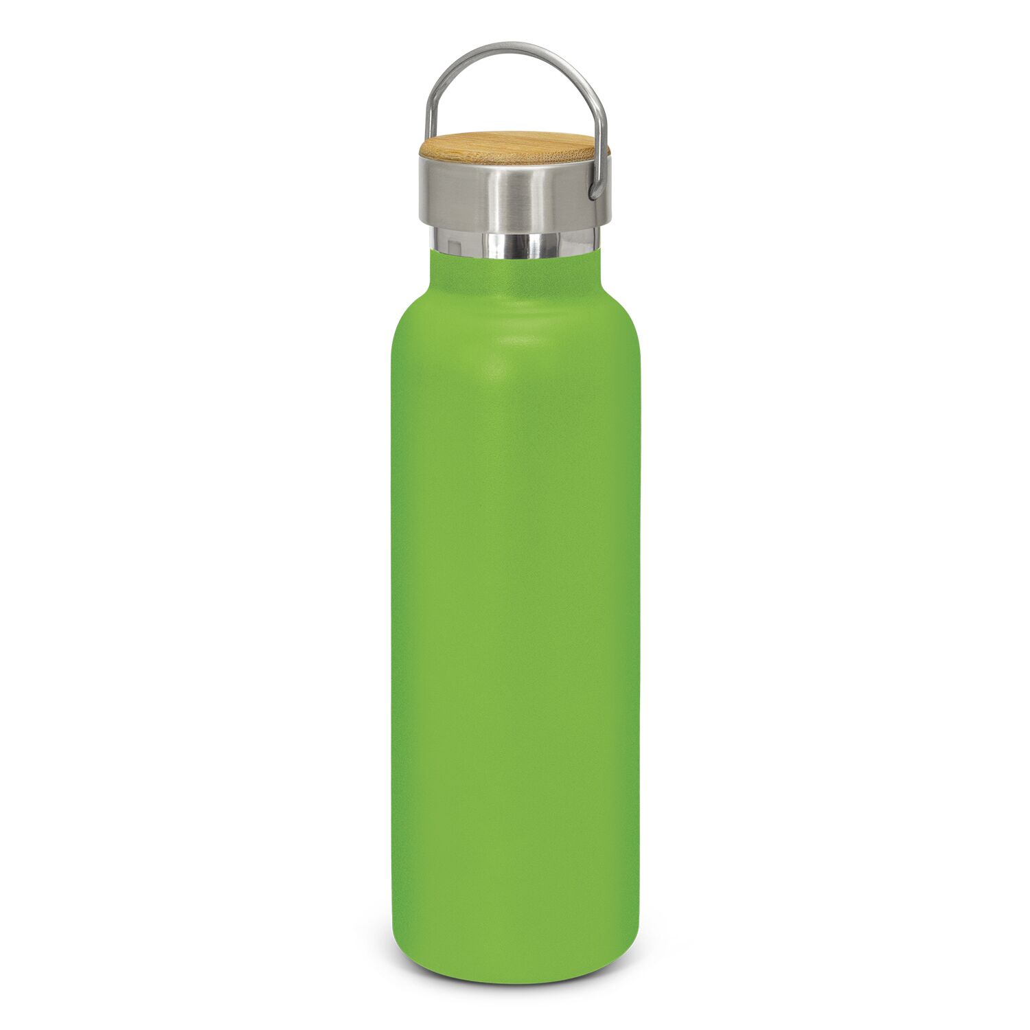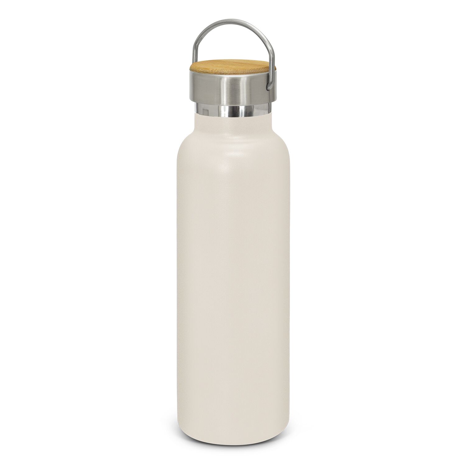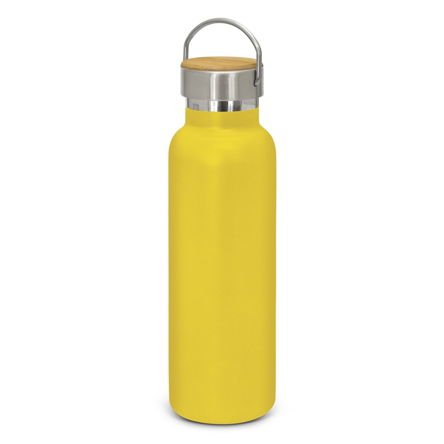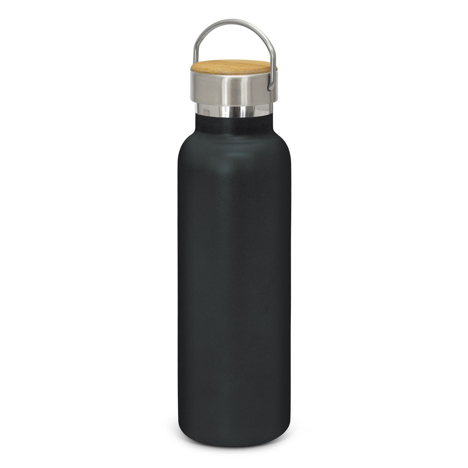 Description: Impressive 650ml BPA-free, double wall, vacuum insulated stainless steel drink bottle which has an extremely durable powder coated matt finish. It will keep drinks cold for 24 hours or hot for up to 12 hours. It has a trendy screw on lid with a stainless steel carry handle that offers a prominent branding opportunity and is available in full stainless steel or with a bamboo veneer. Bamboo is a natural material which produces unavoidable variances in the grain pattern, colour and branding. The lid laser engraves to a natural etch and the bottle laser engraves to a shiny steel finish. It is nicely presented in a black gift box or an optional gift tube. This product is not dishwasher safe and handwashing is recommended.