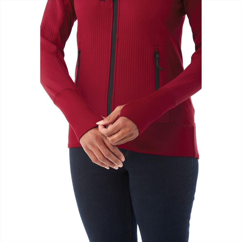 Description: The women's Panorama hybrid knit jacket uses a unique combination of woven and knit elements to create a versatile, distinctive jacket. The innovative dual-layer fabric is anti-pill and has a water-repellent finish which makes this the perfect hybrid jacket to use as an outer layer in milder conditions. Details like a hand warmer in the sleeve cuff and reflective piping makes this jacket stand out.