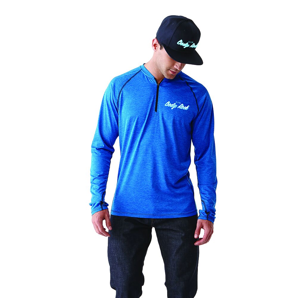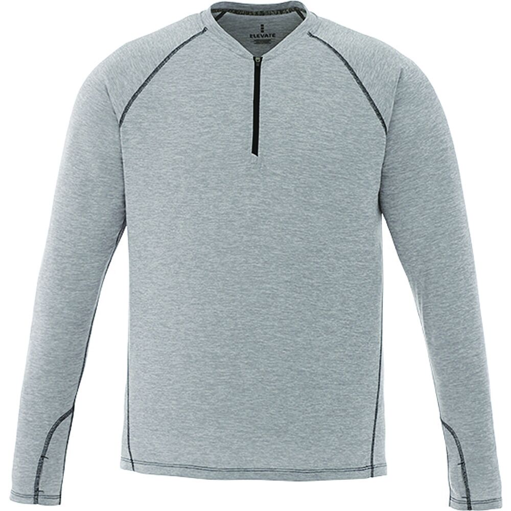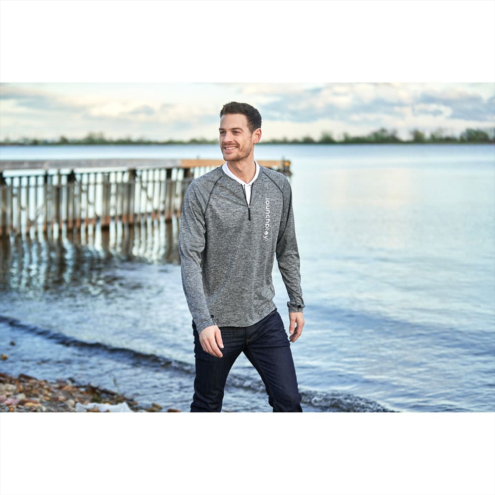 Description: The sporty Quadra long sleeve top is versatile enough for a gruelling morning workout, relaxing evening walk or running errands on the weekend. Offering a modern fit and lightweight comfort, it combines a trendy heather look with the technical performance of a breathable micro polyester fabric that features a front quarter zip closure, thumb exit, moisture-wicking and anti-microbial finish.