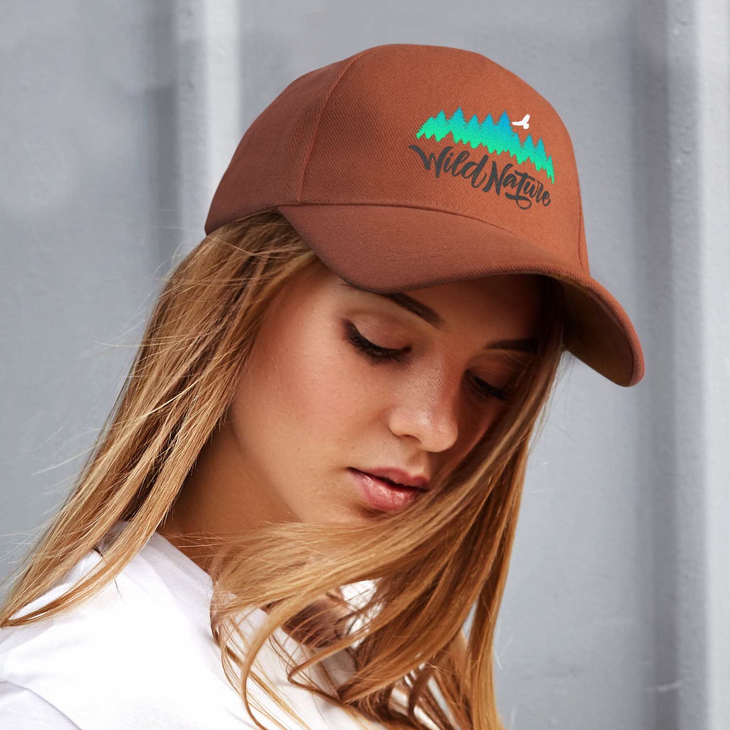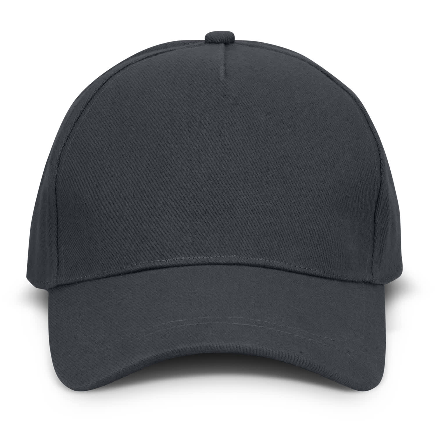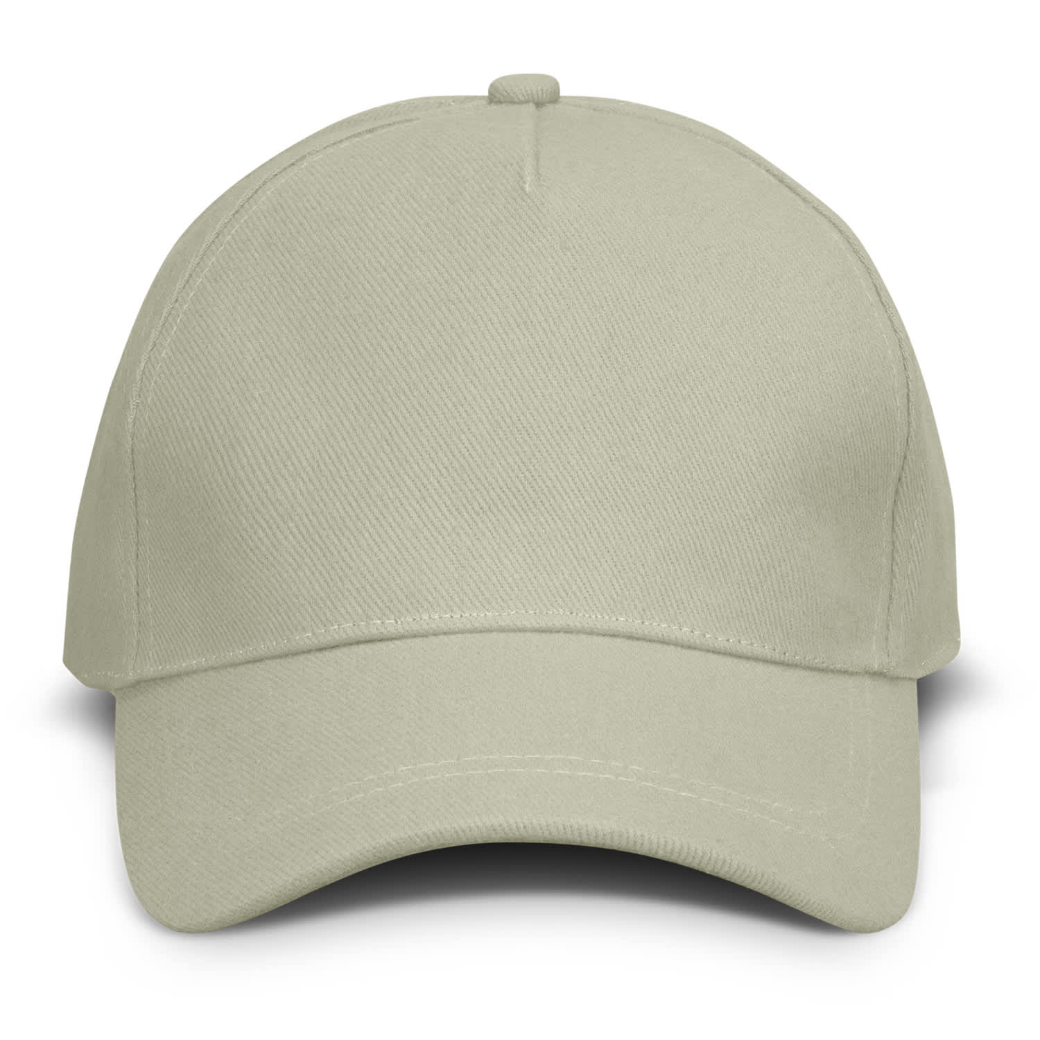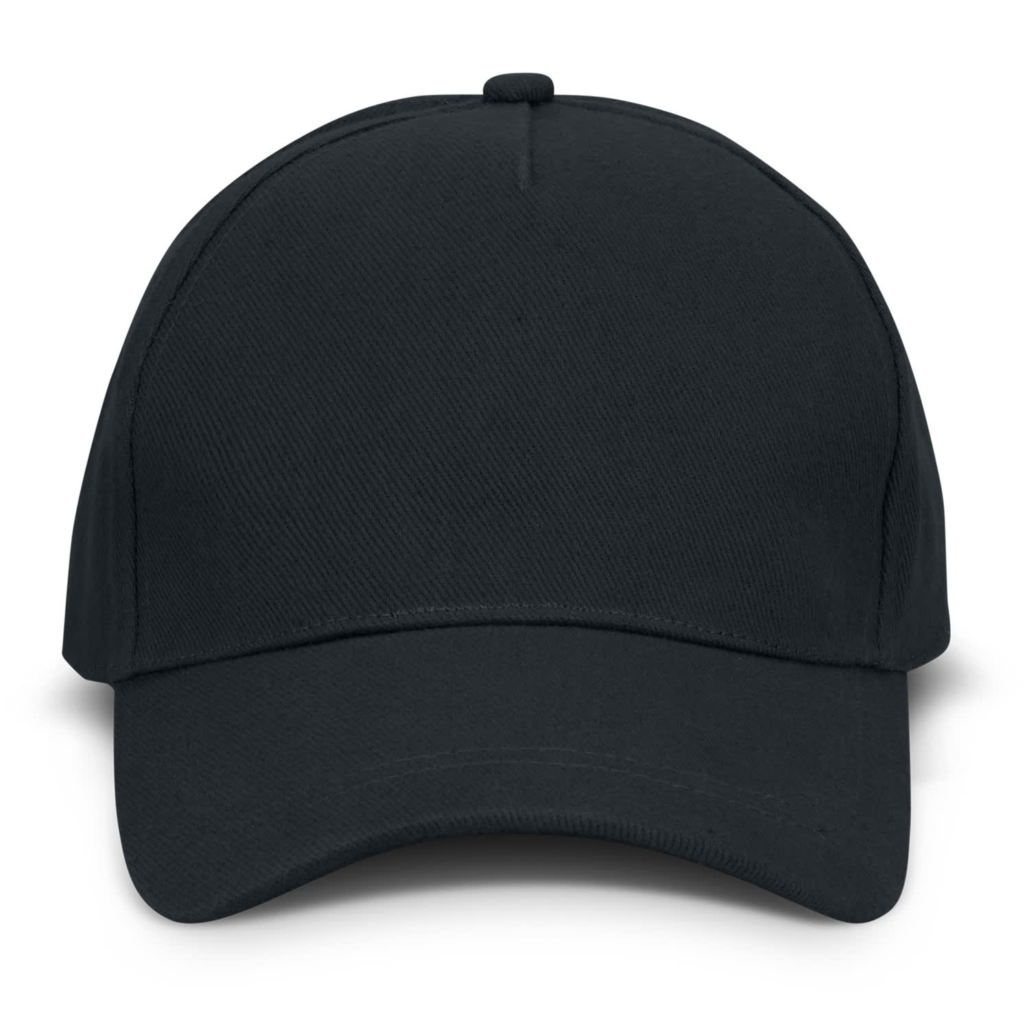 Description: Premium five panel cap made from 100% cotton twill. It has a pre-curved peak, embroidered eyelets, a sweatband and an adjustable velcro closure, allowing one size to fit most people.