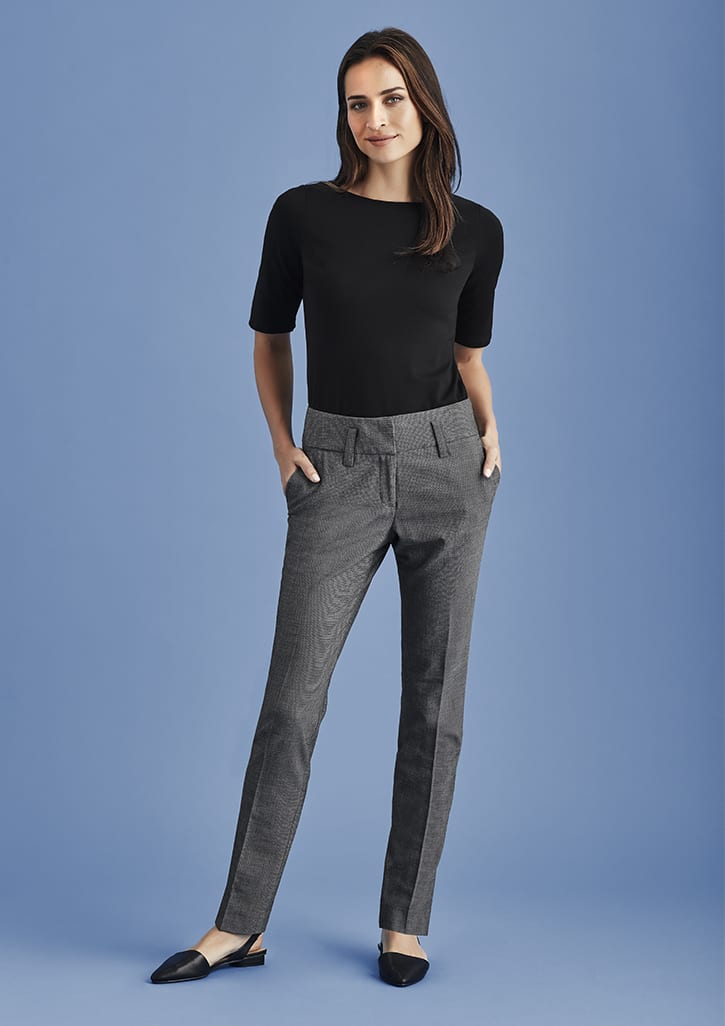 Description: Features: The Contoured waistband pant sits on the waist, and is perfect worn with a shirt or blouse tucked in with a slim line belt. Tapered through the leg. Fabric: 63% Polyester 33% Viscose and 4% Elastane A luxurious two-toned fabric that is durable and easy care, perfect for a corporate environment. Added viscose for breathability and elastane for stretch. Sizes: 4 - 26 (AUS/NZ) 0 - 22 (CA/US) Cares: Pants and Skirts - Machine wash cold. Gentle cycle with like colours. Do not bleach, soak or tumble dry. Line dry in shade. Cool iron. Dry-cleanable.