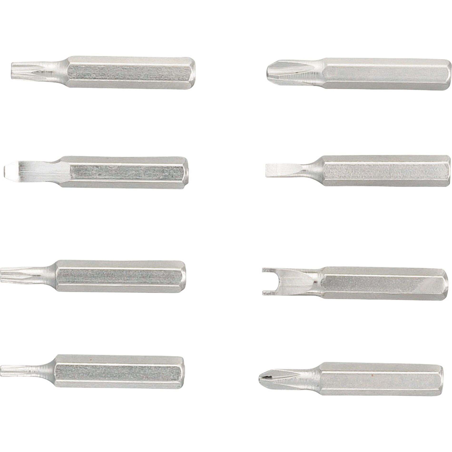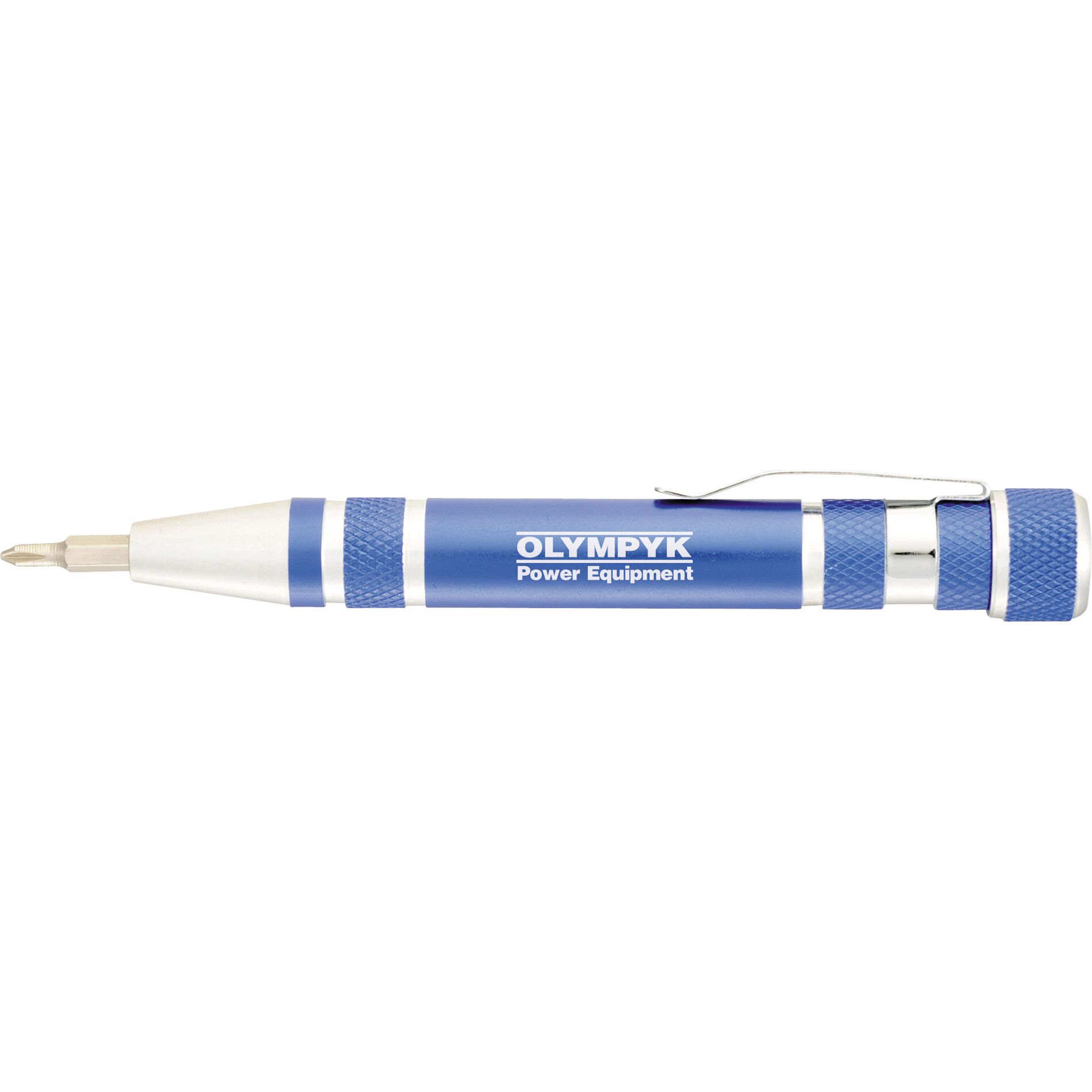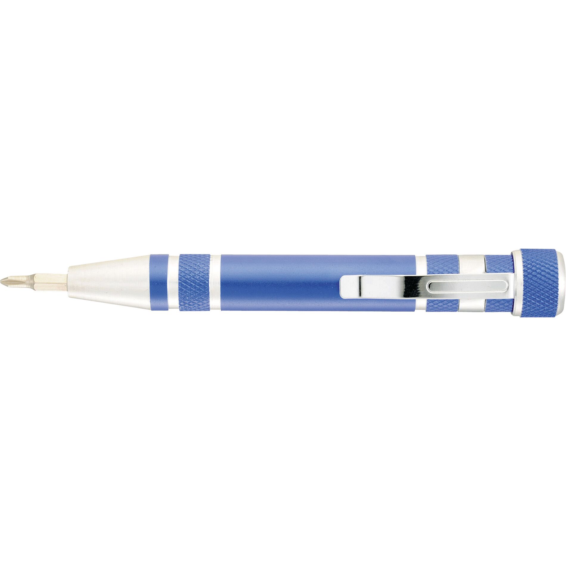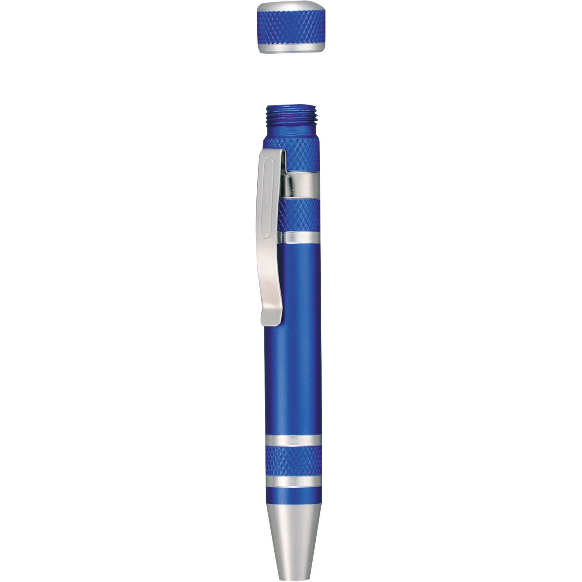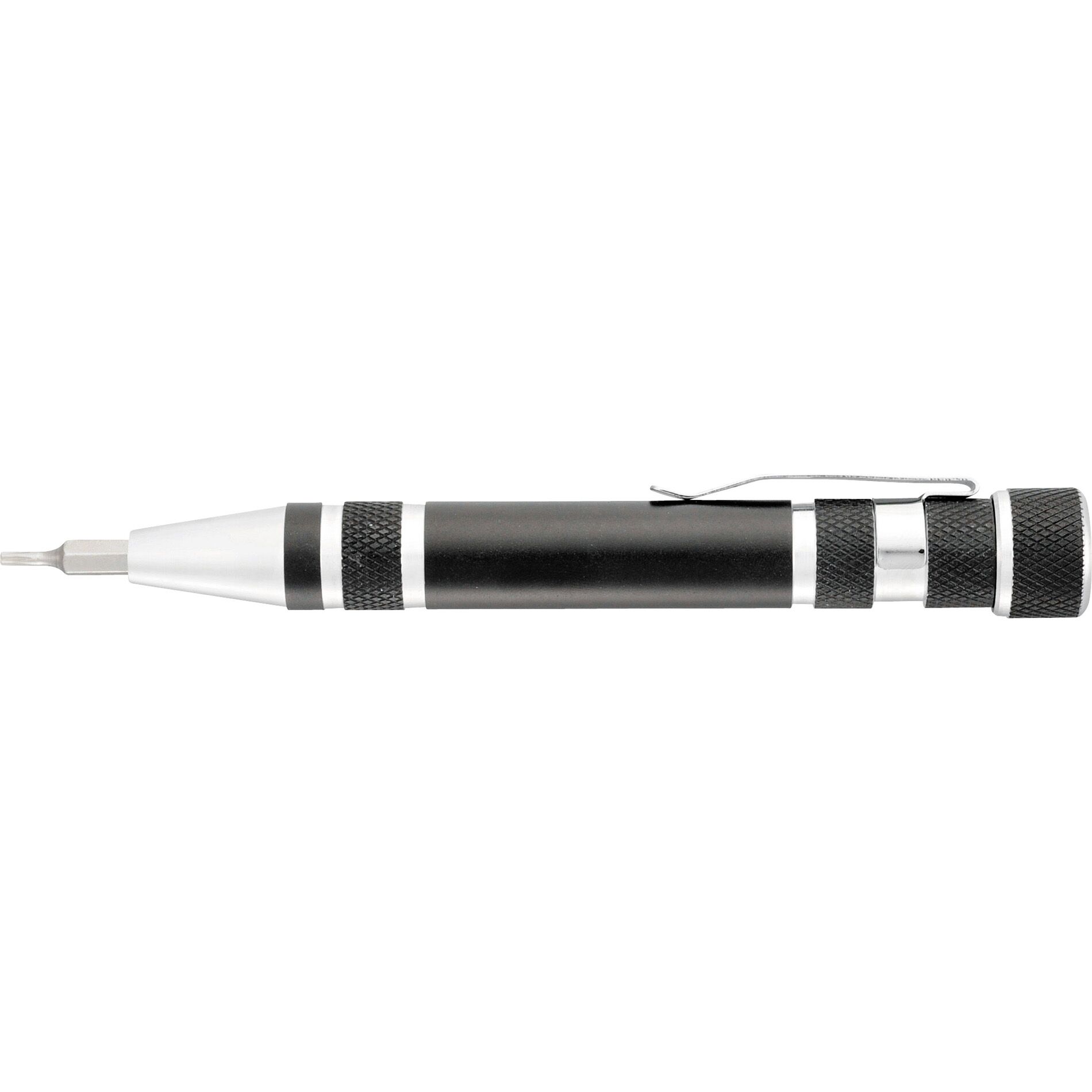 Description: Includes 2 Phillips bits, 3 star head bits, 1 flathead bit, 1 bent flathead bit, and 1 spanner bit. Twist-off cap for bit storage. Magnetic base. Durable metal clip. Laser engraving recommended.
