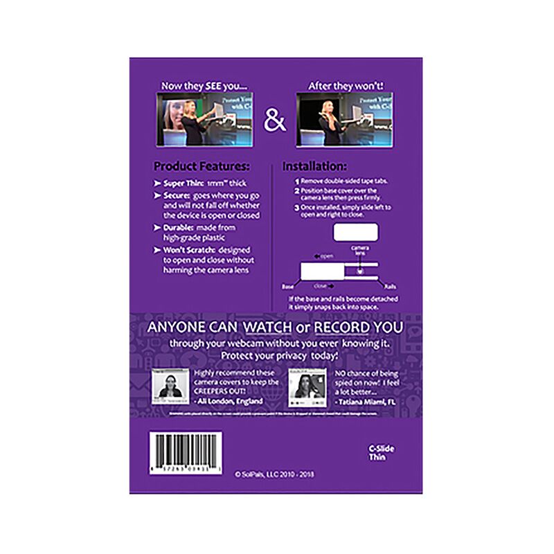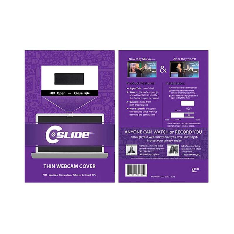 Description: Webcam Covers Thin provides the ultimate privacy protection against webcam hackers while offering a high impression branding area. The thinnest webcam cover in the range is compatible with computer, laptops and smart TV’s. Simply peel off the rear liner to expose the 3M double-sided adhesive that works with all devices. Includes backing card and instructions Material: ABS.